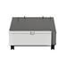 Při použití se zásobníkem na 550 listů zvedá skříň s kolečky tiskárnu do správné výšky, aby umožnila praci s finišery stojící na podlaze a zároveň poskytovala úložný prostor.