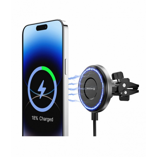 MAGNETICKÝ DRŽÁK DO VENTILACE AUTA SWISSTEN MagRide S BEZDRÁTOVÝM NABÍJENÍM Qi2 15W (kompatibilní s MagSafe)