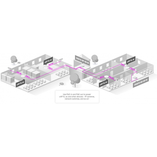 Přestože rádio podporuje režim opakovače, dva gigabitové ethernetové porty vám dávají možnost rozšířit síť pomocí kabelů, i když je vyžadováno napájení PoE: