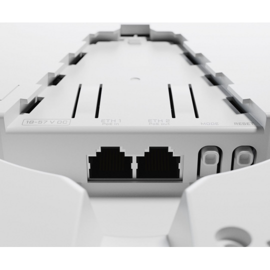 - cAP XL ac podporuje vstup PoE 802.3af/at na prvním portu a pasivní výstup PoE (až 57 V) na druhém portu.