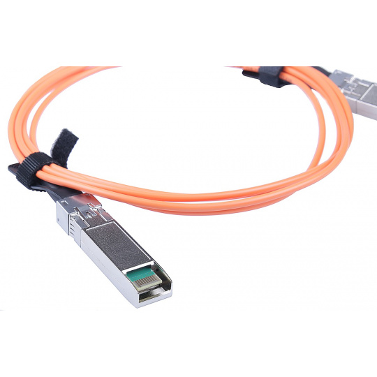 Aktivní optický propojovací AOC kabel je dodáván s universální Cisco kompatibilitou, která zaručí bezproblémové použití s většinou výrobců aktivních prvků. AOC propojovací kabel se zapojí přímo do SFP/SFP+ slotu na aktivním prvku a ihned tak vytvoření spojení rychlostí až 10Gbps. Propoj pomocí AOC se v aktivním prvku jeví i chová jako spojení s klasickými SFP/SFP+ moduly. Délka 5m, aktivní provedení.