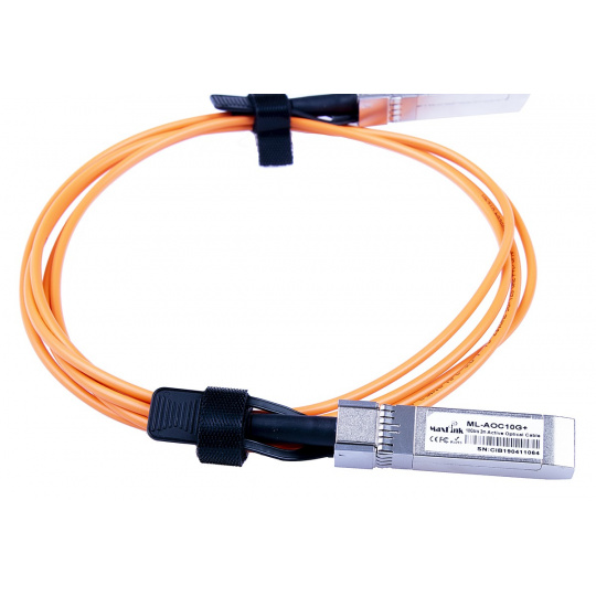 MaxLink 10G SFP+ AOC kabel, aktivní je rychlé a levné řešení pro snadné propojení dvou síťových aktivních prvků switch/router rychlostí 1G nebo 10Gbps bez nutnosti pořízení SFP/SFP+ modulů či jiného příslušenství (například optické patch kabely).