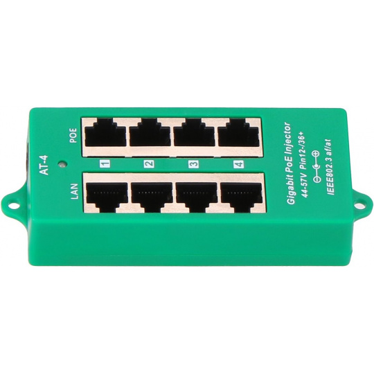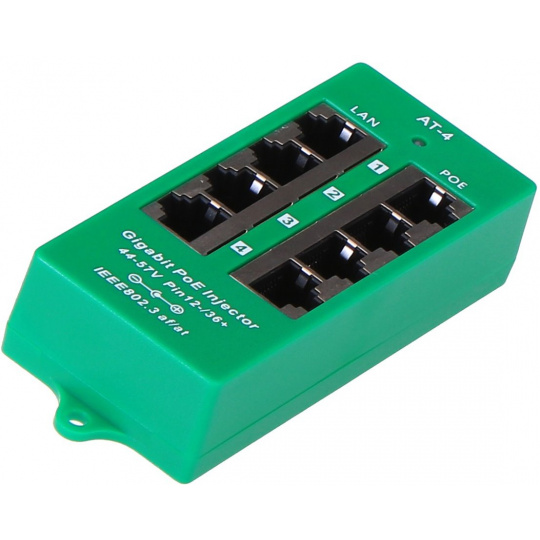 Gigabitový aktivní PoE injektor určený pro napájení až čtyř zařízení, jako jsou IP kamery, VoIP telefony nebo další síťová zařízení s podporou standardů 802.3af/at. Poskytuje spolehlivé napájení i přenos dat po ethernetovém kabelu a je vhodný pro profesionální instalace s vyššími nároky na výkon.