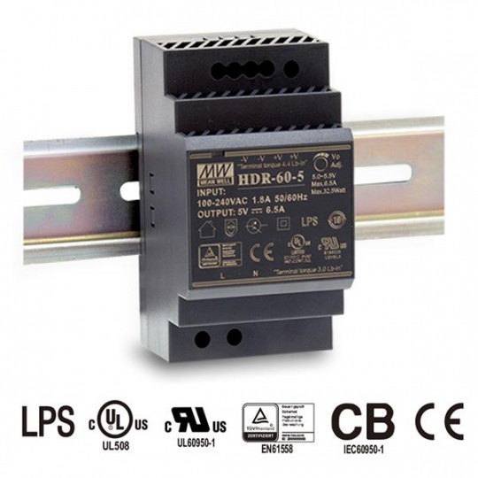 MEANWELL - HDR-60-24 - Průmyslový napájecí spínaný zdroj 24V 60W na DIN
