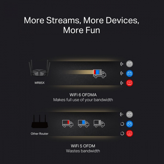• Dvoupásmový Wi-Fi 6 router AX3000 MR85X