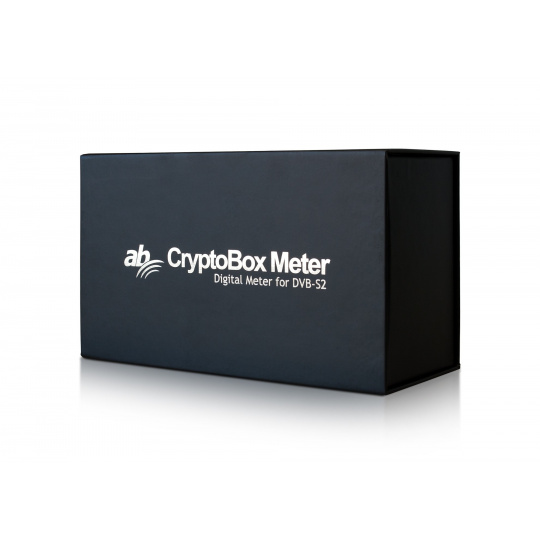 AB CryptoBox Meter je merací prístroj pre satelitné vysielanie, ktorý je jednoduchý na používanie a za bezkonkurenčnú cenu na trhu. Podporuje HD normu satelitného vysielania DVB-S / DVB-S2. Možnosť merania: Sila signálu, kvalita signálu, SNR, PWD, BER, kompas, plus zobrazuje konštalačný diagram a spektrálny analyzér. Meranie DiSEqC prepínačov a DiSEqC motorov. (DiSEqC 1.0, 1.1, 1.2 a USALS) , zvukový indikátor signálu. Zabudovaný 2,4" farebný LCD displej. Rýchlo nabíjateľná LI-ION batéria s výdržou 2,5 hodín (1800 mA). Jednoduchý na nosenie v pogumovanom púzdre. Príslušenstvo: Púzdro, napájací zdroj (nabíjačka) 230V, F-redukcia.