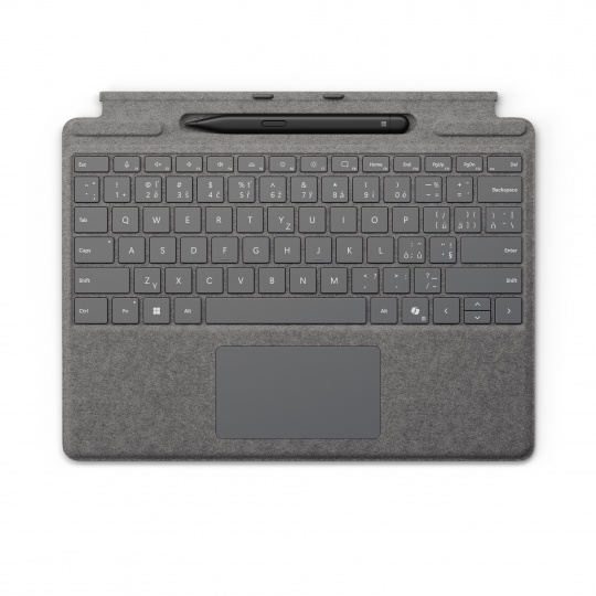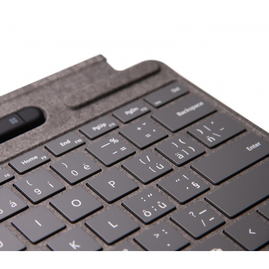 Posuňte všestrannost na novou úroveň s perfektní prémiovou klávesnicí s mechanickými a podsvícenými klávesami, která nabízí skleněný touchpad a zbrusu novou klávesu Copilot, abyste měli AI na dosah ruky. Díky integrovanému slotu Surface Slim Pen máte zajištěné bezpečné a snadné dobíjení.