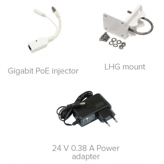 Wireless Wire Dish disponuje 1x Gigabitovým Ethernetem s podporou PoE. Jednotku lze napájet jak přes aktivní (802.3af/at), tak i pasivní PoE s rozsahem 12 až 57V. Maximální spotřeba zařízení je pouhých 5W!