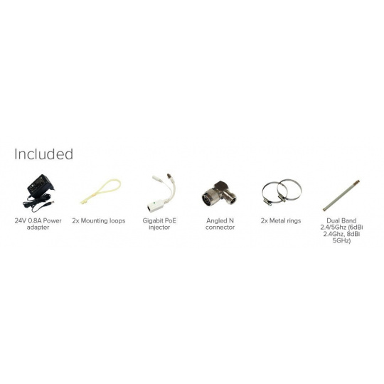 AP softwarová license umožňuje po připojení všesměrové antény vytvoření výkonného přístupového bodu, součástí dodávky Dual Band 2.4/5GHz Omni anténa (6dBi 2.4GHz / 8dBi 5GHz),