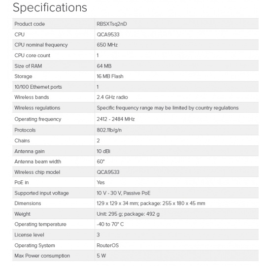 DatasheetMikroTik RBSXTsq2nD 2,4GHz MIMO 10dBi outdoor