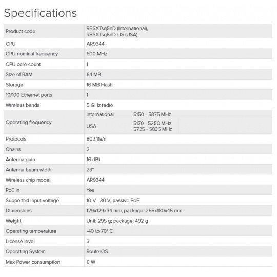 MikroTik RBSXTsq5nD 5GHz MIMO 16dBi outdoor