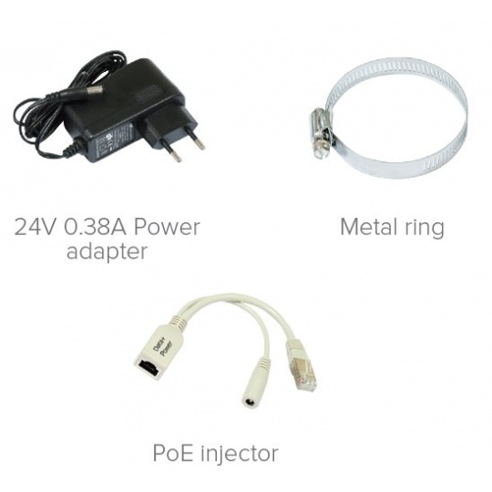 Součástí dodávky je napájecí zdroj 24V 0,3A včetně PoE.