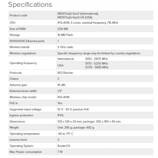 DatasheetMikroTik RBSXTsqG-5acD, SXTsq 5 ac