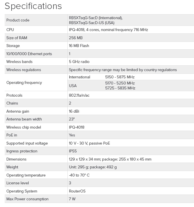DatasheetMikroTik RBSXTsqG-5acD, SXTsq 5 ac