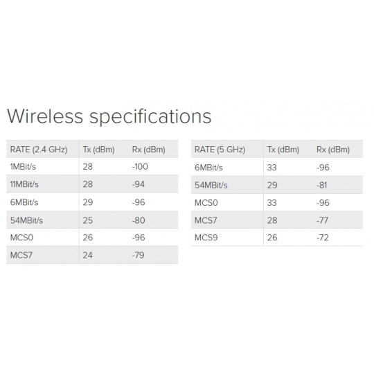 Citlivost (dBm): - 100 (1 mbps) až - 72 (MCS9) dBm