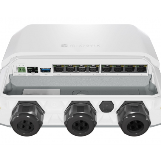 7x Gigabit Ethernet port, 1x 2,5 Gigabit Ethernet, 10G SFP+, 1GB RAM, 1GB NAND, moderní čtyřjádrový CPU, 9 možností napájení, krytí IP66