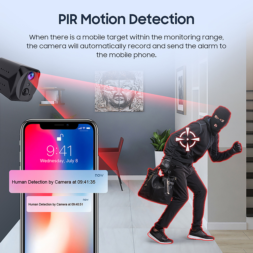 •PIR detekce pohybu: Infračervené čidlo a pohybový senzor s dosahem až 5 metrů vás okamžitě upozorní na jakoukoli aktivitu.