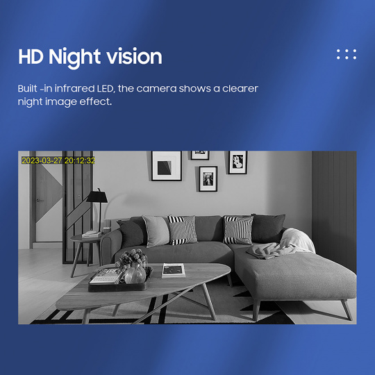 •Pokročilá detekce pohybu: Kombinace PIR infračerveného světla a pohybového senzoru dokáže detekovat pohyb až na vzdálenost 5 metrů, což vám poskytne včasné upozornění na jakoukoli aktivitu.