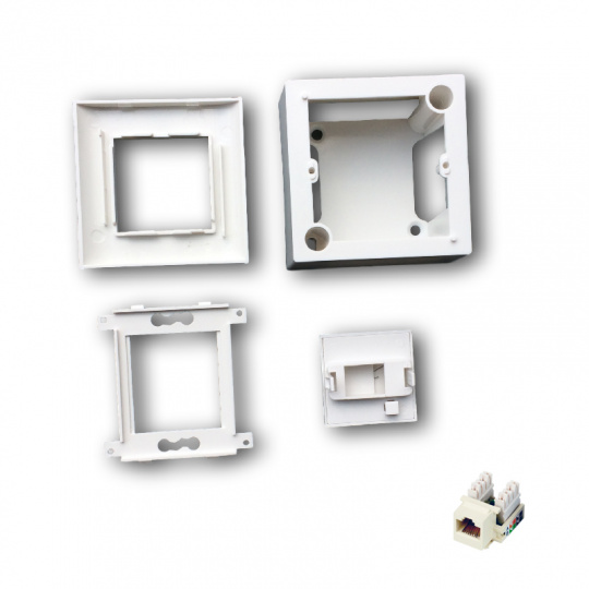 - 1 x /8p8c/ RJ45 UTP keystone je součástí balení, na obrázku schovaný za protiprachovou krytkou