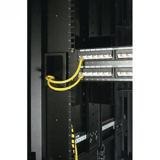 Tento horizontální organizér kabelů podporuje správné proudění vzduchu a zároveň umožňuje vedení kabelů zepředu do zadní části stojanu. Obsahuje plastové prsty v krocích po 1U pro organizovaný vstup a výstup kabelu.