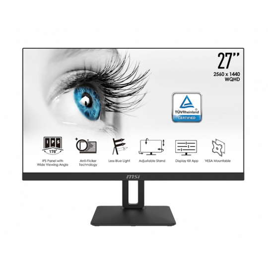 MSI monitor PRO MP271QP, 27"/2560 x 1440 (QHD)/IPS/5ms/1000:1/300cd / m2/2x HDMI/DP