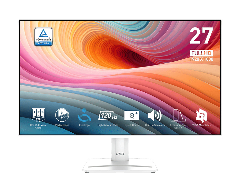 MSI monitor PRO MP275W E2, 27" IPS/1920 x 1080 (FHD)/120Hz/1ms/DP/HDMI/D-Sub/bílá
