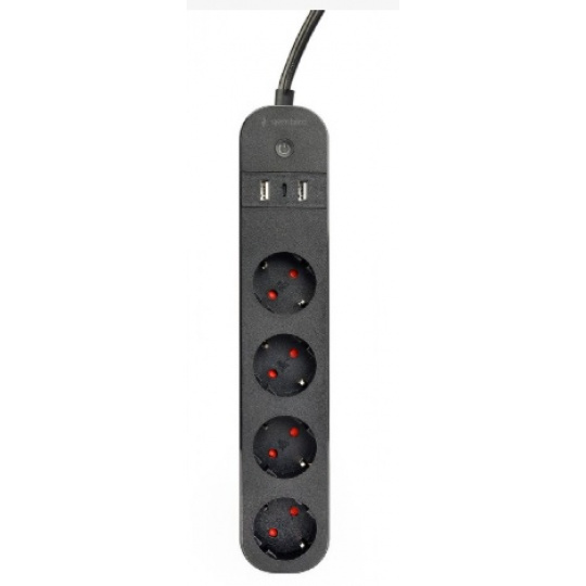 GEMBIRD chytrá prodlužovačka s USB nabíječkou, 4 zásuvky, černá