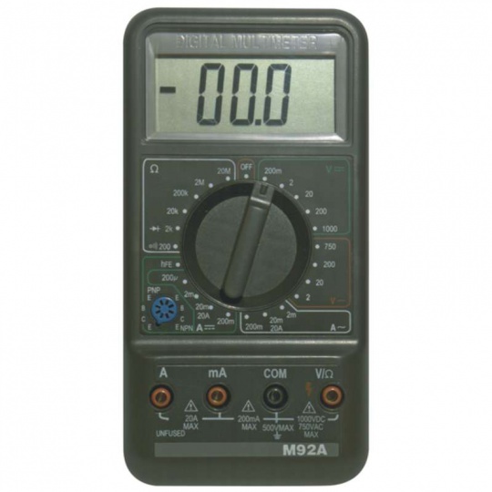 Základní údaje Značka EMOS Obecné číslo M2092 Produktové číslo 2202003000 EAN 8595025314703 Nejdůležitější parametry volba rozsahu manuální AC napětí 2–600 V AC proud 2 mA – 10 A DC napětí 200 mV – 600 V DC proud 2 mA – 10 A elektrický odpor 200 Ohm – 20 MOhm spojitost obvodů ano Ostatní parametry test diod ano test tranzistorů ano bezkontaktní detekce AC napětí ne kontaktní detekce AC napětí ne test baterií ne měření teploty ne záznam max. hodnoty ne záznam naměřené hodnoty ne automatické vypnutí ne zobrazení displeje 3,5 digit indikace slabé baterie ano podsvícení displeje ne klešťový multimetr ne rozměr 32 × 85 × 165 mm napájení 1× 9 V (součástí balení) součást dodávky baterie, návod, měřicí hroty prodejní obal 1 ks, blistr