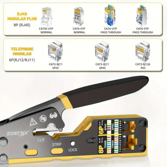Nářadí-Kleště lisovací RJ-45 pro CAT5e, CAT6/6A a CAT7