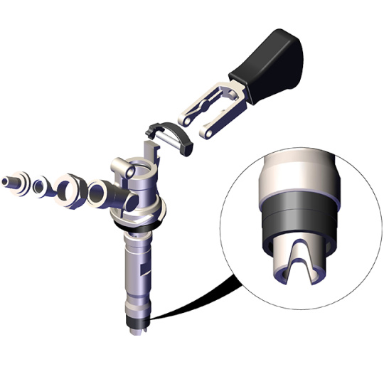 Naražeč Bajonet je nejrozšířenějším typem naražeče a používá ho většina standardních pivovarů.