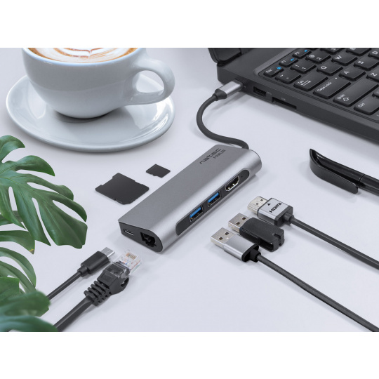 Natec multiport adaptér Fowler MINI USB-C PD, USB 3.0, HDMI 4K