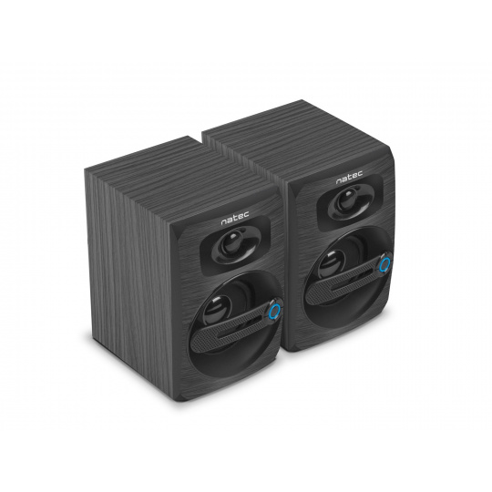 Pouzdro reproduktorů Natec COUGAR je rafinovanou kombinací plastu a dřeva pro lepší potlačení rezonance. Dosažený zvuk je tak plnější, teplejší a přirozenější. Díky 90 cm kabelu reproduktory pohodlně umístíte kdekoliv.