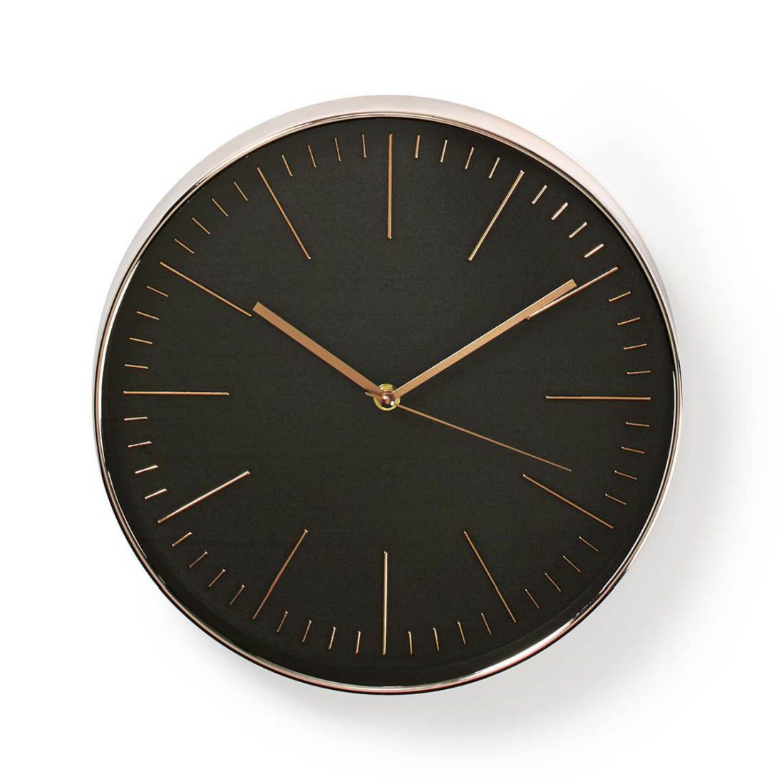 Nedis CLWA013PC30BK - Kulaté Nástěnné Hodiny | Průměr 30 cm | Černá a Růžové zlato