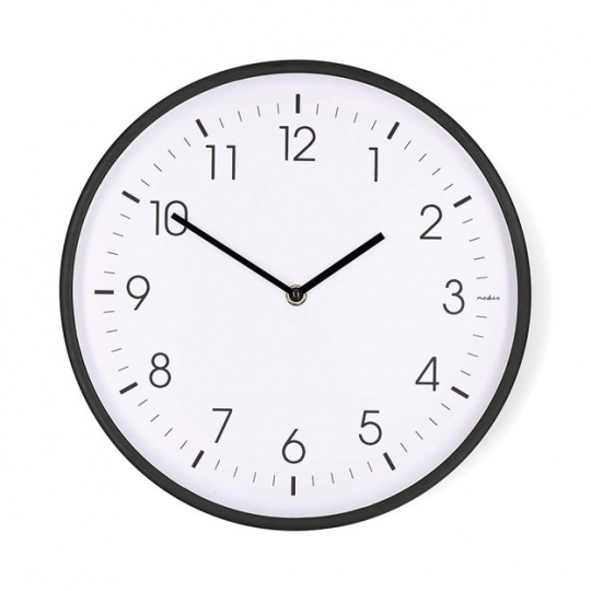 Nedis CLWA1226BK - Nástěnné hodiny | Průměr: 300 mm | Plast | Tichý pohyb | Černá