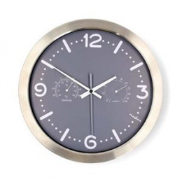 Nedis CLWA5226SS - Nástěnné hodiny | Průměr: 300 mm | Nerezová Ocel | Tichý pohyb | Teploměr | Vlhkoměr | Kov / Šedá
