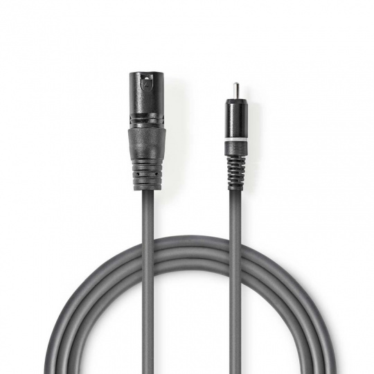 Nedis COTH15205GY15 - XLR Audiokabel | XLR 3pinová Zástrčka – RCA Zástrčka | 1,5 m | Šedá barva
