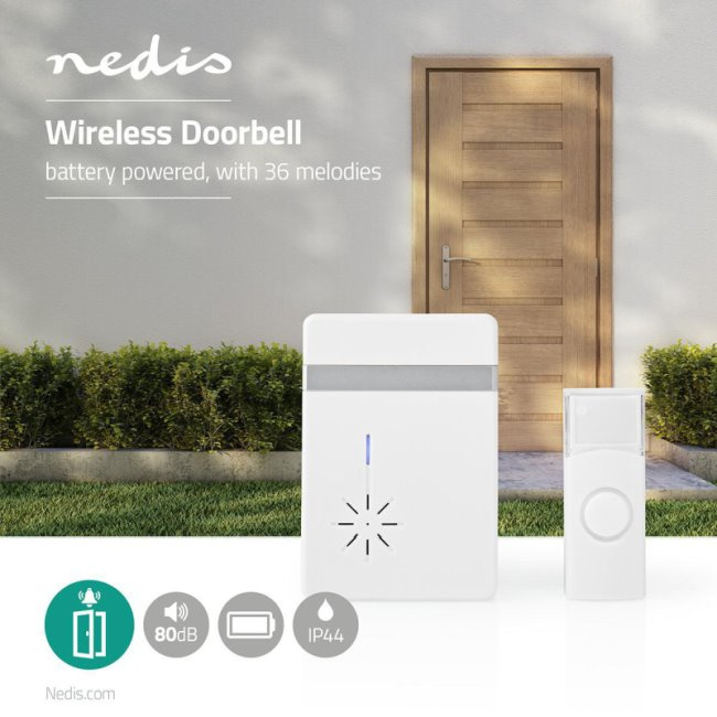 Nedis DOORB212WT - Sada Bezdrátového Domovního Zvonku| Napájení na Baterii | 36 Melodií