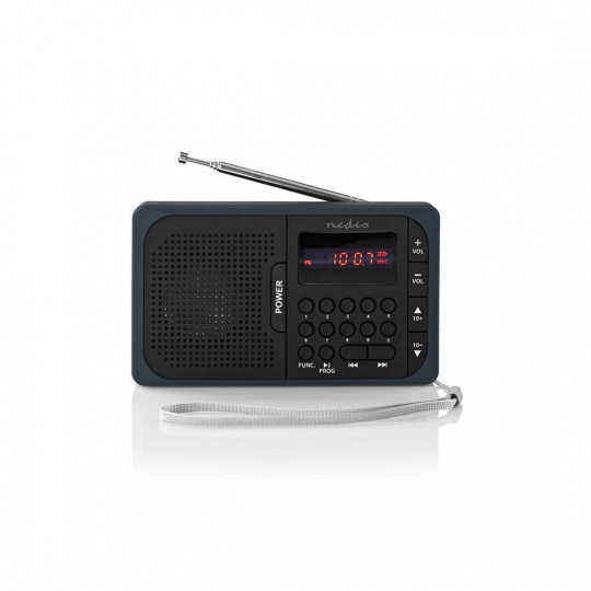 Nedis RDFM2100GY - FM Rádio | 3,6 W | Port USB a Slot na microSD kartu | Černá / Šedá
