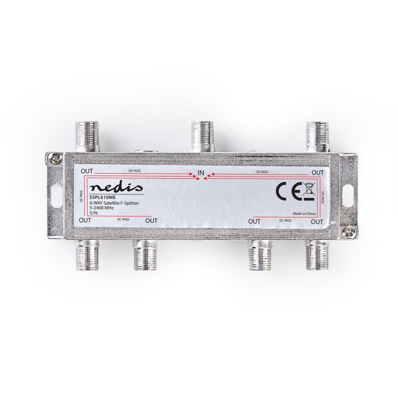 Nedis SSPL610ME - Satelitní F-Rozbočovač | Max. zisk 17 dB | 5–2 400 MHz | 6 Výstupů