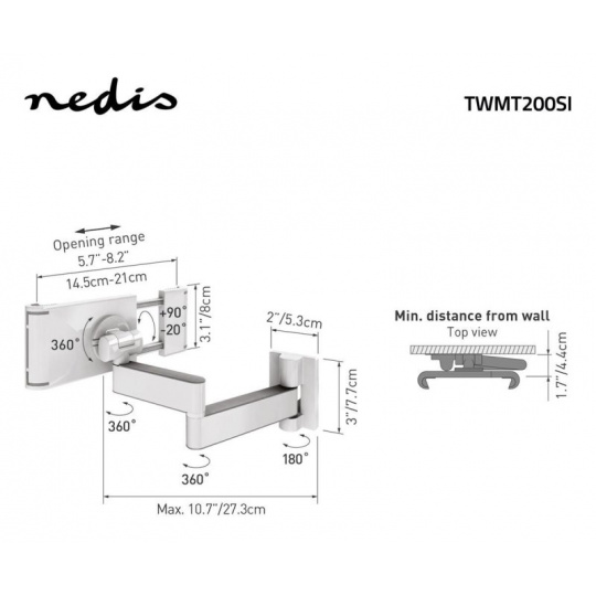 Nedis TWMT200SI - Držák tabletu | 7 – 12" | Full Motion