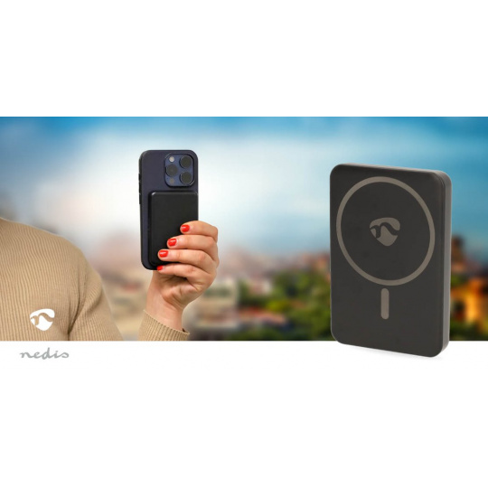 Nedis UPBKW15W5000BK - Powerbanka | 5000 mAh | Bezdrátové nabíjení / Výstup1x USB-C | Vstup1x USB-C | PD3.0 20W
