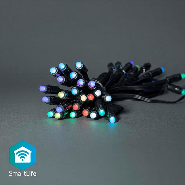 Chytrý Wi-Fi světelný řetěz funguje i bez brány a stane se přímou součástí bezdrátové sítě – díky tomu není nastavení složité ani nákladné. Světelný řetěz můžete ovládat pomocí bezplatné aplikace Nedis® SmartLife, která umožňuje nastavovat automatický režim podle časového rozvrhu, západu slunce nebo ostatních produktů Nedis® SmartLife. V kombinaci s asistenty Google Home nebo Amazon Alexa můžete dokonce používat hlasové příkazy ke změně vzorů na světelném řetězu.