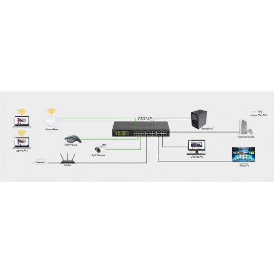 VoIP telefony, IP bezpečnostní kamery, bezdrátové přístupové body, přibližovací senzory, dveřní zámky a další. Všechna tato zařízení se v posledních letech stávají nedílnou součástí vybavení malých i velkých firem. Společně s nimi však roste také nárok na firemní sítě v oblasti PoE/PoE+. Rozhodujícím se tak stává výběr výkonného a spolehlivého přepínače, který dokáže potřeby jednotlivých firem vhodně reflektovat.