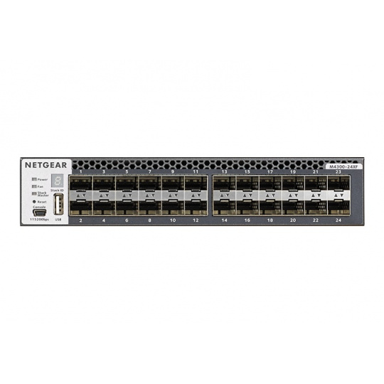 Netgear M4300-24XF 24xSFP+ and 2x10G (shared) Managed Switch. Stohovatelný managed switch s poloviční šířkou 24x SFP+. Zcela nová řada přepínačů vyvinutá a zkonstruovaná pro rostoucí trh AV přes IP.