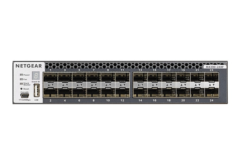 Netgear M4300-24XF 24xSFP+ and 2x10G (shared) Managed Switch. Stohovatelný managed switch s poloviční šířkou 24x SFP+. Zcela nová řada přepínačů vyvinutá a zkonstruovaná pro rostoucí trh AV přes IP.