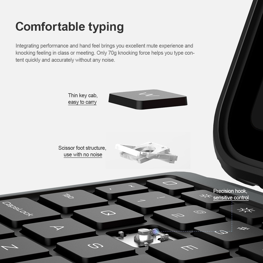 Kryt Vám nabídne špičkově zpracovanou bezdrátovou klávesnici s nízkým zdvihem, tichými a odolnými spínači a precizní profilací kláves pro to nejpohodlnější psaní.
