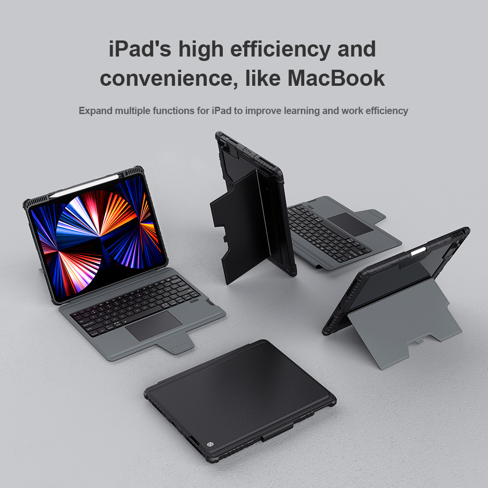 Nillkin Bumper Combo Keyboard Case je víceúčelový ochranný kryt tabletu s klávesnicí, slotem pro Apple Pencil s automatickým nabíjením a plynule nastavitelným úhlem tabletu.