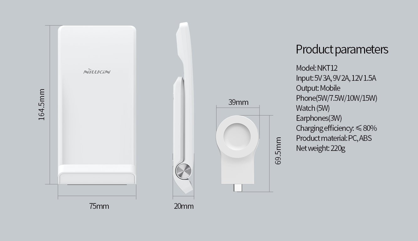Nillkin PowerTrio 3v1 Bezdrátová Nabíječka pro Garmin Watch White