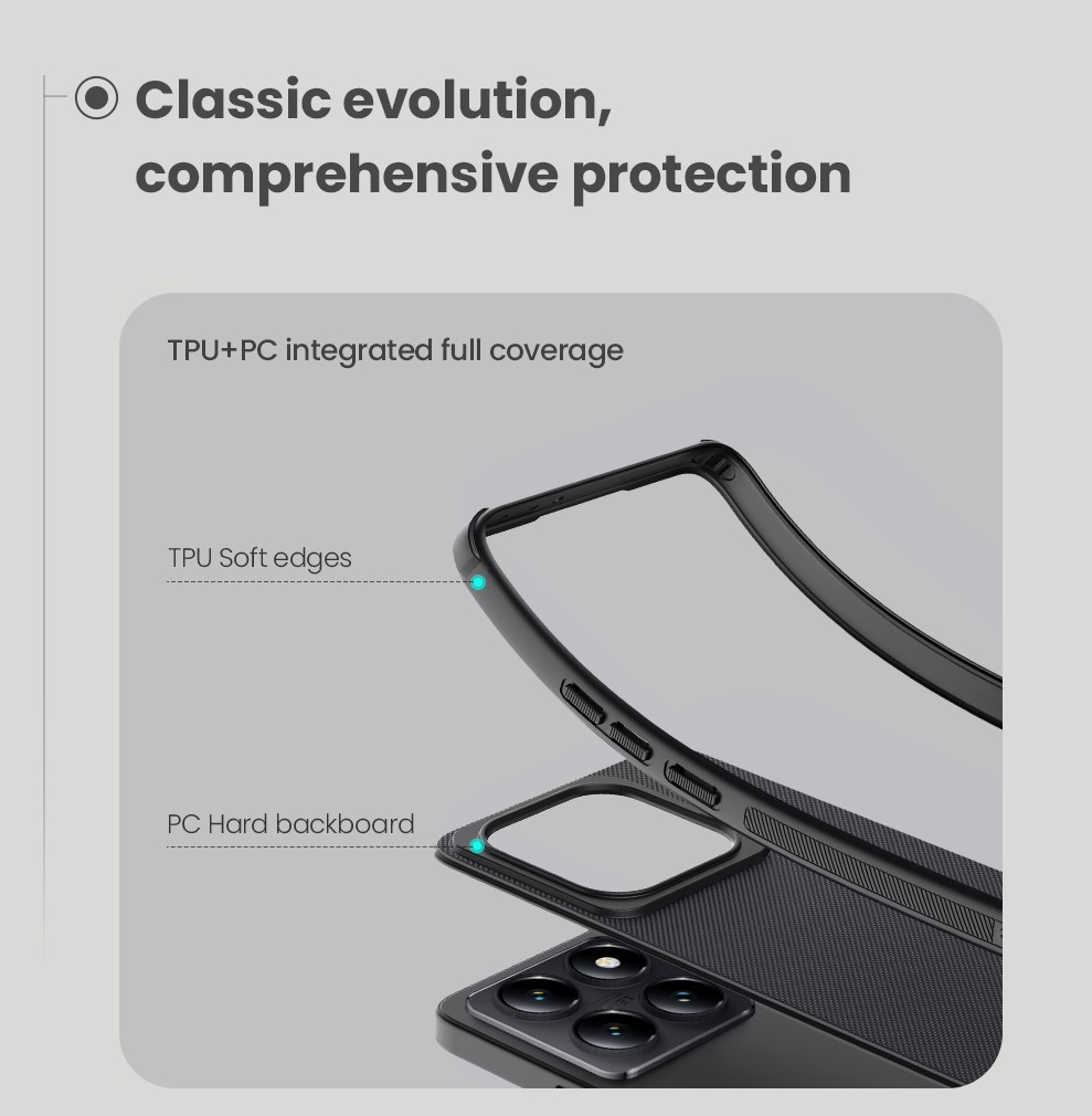 Skládá se z tvrdého a odolného plastu na zadní straně a TPU měkkého plastu na bocích.