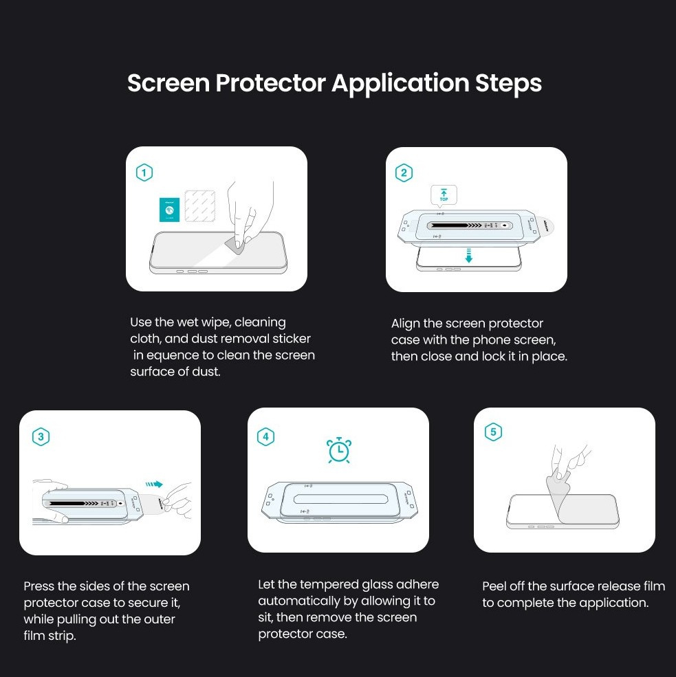 Díky němu můžete snadno nainstalovat tvrzené sklo na displej bez rizika špatného umístění nebo tvorby vzduchových bublin.